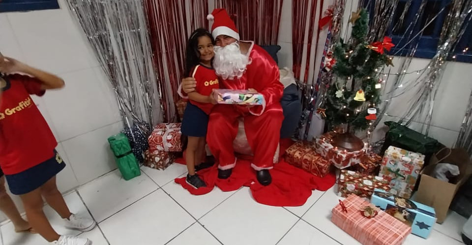 A confraternização não seria completa sem a presença do Papai Noel, que distribuiu sorrisos e presentes, enchendo o ambiente de magia natalina. Agradecemos a todos que participaram, contribuíram e tornaram essa manhã tão especial. Ficamos emocionados ao ver a família Grafitinho unida, celebrando não apenas o Natal, mas também a jornada educacional que compartilhamos ao longo do ano!