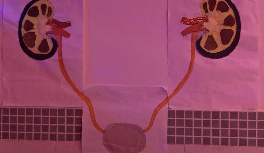 Os alunos do 8º ano foram além e proporcionaram aos visitantes uma verdadeira aula de inclusão com uma experiência sensorial. Para falar sobre o Sistema Urinário, os estudantes reproduziram o Aparelho Urinário em cartazes com diferentes texturas. Ao entrar na sala, o visitante era vendado e percorria todo o trajeto com a ajuda dos alunos, tocando e escutando as explicações. A proposta era mostrar como os deficientes visuais têm mais dificuldades para entender sobre a ciência e o corpo humano.